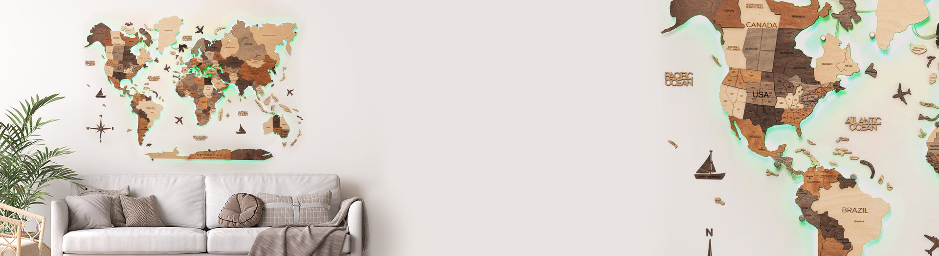 Illumina le tue pareti con stile grazie alle nostre mappe del mondo 3D in legno con LED. Realizzate a mano con legno naturale di alta qualità, queste mappe combinano artigianato, design tridimensionale e un’illuminazione suggestiva che trasforma qualsiasi ambiente.
